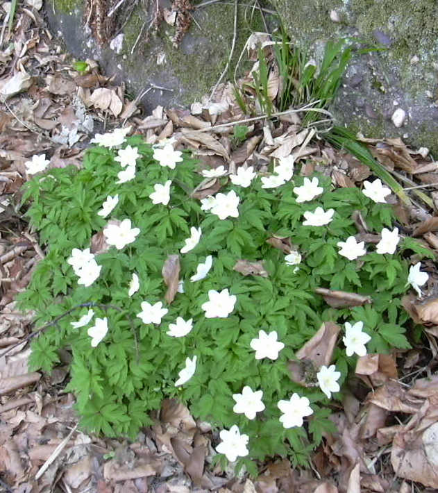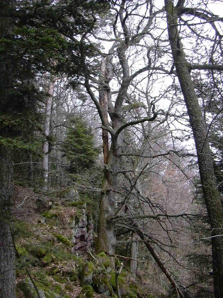 du plateau des fées. Il ne faut évidemment pas oublier l'éranthe d'hiver ou hellébore d'hiver que l'on peut rencontrer tout autour du château du Landsberg. Cette petite plante est originaire du bassin méditéranéen et a probablement été rapportée ici par quelque chevalier lors d'une croisade, il y a fort longtemps. Au printemps également on peut rencontrer diverses petites fleurs, discrètes et parsemées le long des sentiers. Luttant pour avoir une petite place au soleil: potentille, euphorbe, anémones sylvies. |
