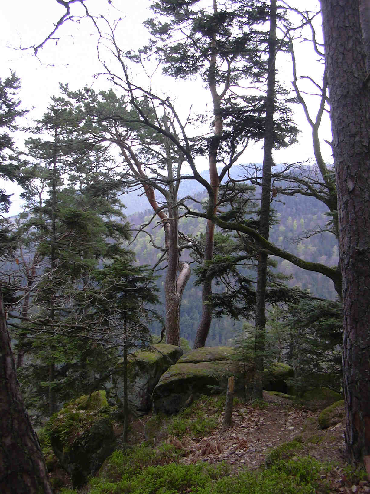 | Le massif du Mont sainte odile et ses environs ne présente pas une richesse floristique incomparable. Il faut savoir que le sol est très siliceux et acide. Cela restreint fortement la croissance d'espèces courantes que l'on peut rencontrer sur d'autres massifs vosgiens. La montagne est couverte par une majorité d'arbres à feuilles persistantes (pins, sapins, épicéas). Dans certaines zones, on rencontre plutôt des arbres à feuilles caduques (hêtres, chênes, bouleaux, mélèzes). Le sous bois est assez pauvre. On rencontre